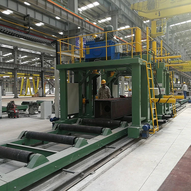 Najprv zdvihnite bod „v tvare U“ zváraného k sprostredkovaniu valčekového stola montážneho stroja alebo ho prepravte na túto stanicu z predchádzajúcej zostavy „v tvare U“. Potom zdvihnite hornú kryciu dosku na „v tvare U“ podľa požiadaviek na kreslenie a použite ju ako hostiteľské tlačové zariadenie a horné lisovacie zariadenie. Stlačte a zafarbte hornú kryciu dosku, aby ste dokončili zostavu celého obrobku. Zostava segmentov obrobku s dĺžkou sa dosahuje pohyblivou polohou hostiteľského stroja. Zostavený obrobok je zaslaný do ďalšieho procesu sprostredkovacím valčekovým stolom na ďalšie spracovanie.