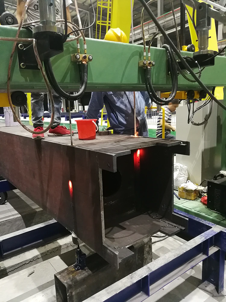 1.1. Vybavené sú dve sady elektroslag zváraných systémov, ktoré môžu synchrónne zvárať dva zvary z tej istej oddielovej dosky;
