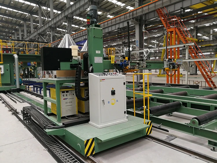 XZHB15 ROZNALOVANIE ELEKTROSLATOVÝCH ZAVIEŤOVÝCH SÚLOMNÍCTVO je vynikajúcim produktom, ktorý spoločnosť Jinfeng Welding and Cutting Company pre odvetvie oceľových štruktúr. Je to špeciálne zváracie zariadenie špeciálne navrhnuté pre stĺpec zvárania. Aby sa zabezpečila dostatočná odolnosť proti tuhosti a torznej odolnosti počas výroby kolónky v boxe, sústavy (t.j. tuhšie platne) sa vo vnútri stĺpca škatule spravidla zvárajú. Tento stroj je špeciálne vybavenie na zváranie zvarov medzi vonkajšou doskou stĺpca krabice a vnútornými usmerňami.