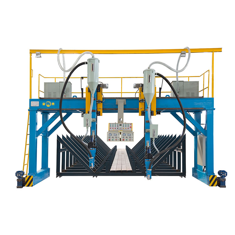 Na zaťaženie H-lúča, ktoré potrebujú zváranie pod tavivom na zváracom stoleStroje na zváranie lúčom H. Potom použite ovládaciu skrinku v strede nosníka a asistenta s určitým ručným nastavením, aby ste nastavili celý stroj, zváracie ramená, zariadenie na sledovanie zvarových švov a zvárací horák atď. na začiatočný bod zvárania, potom začnite samostatne podávať tavidlo. , systém obnovy toku, zdroj zváracieho prúdu a pozdĺžny pohyb konštrukcie stroja, takže je možné realizovať automatické zváranie na H-lúče. Pretože všetky zváracie údaje sú centrálne riadené na paneli ovládacej skrinky, je pre obsluhu veľmi pohodlné vykonávať akékoľvek úpravy zváracieho prúdu, zváracieho napätia a rýchlosti zvárania na zváracom zdroji jednoducho. Pozícia prívodného potrubia taviva a regeneračného potrubia sa dá ľahko vymeniť a potom je možné realizovať obojsmerné zváranie na H-nosníku.